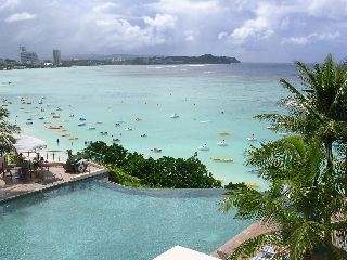 スコールの後にできた虹 (ホテルから) 写真2枚合成